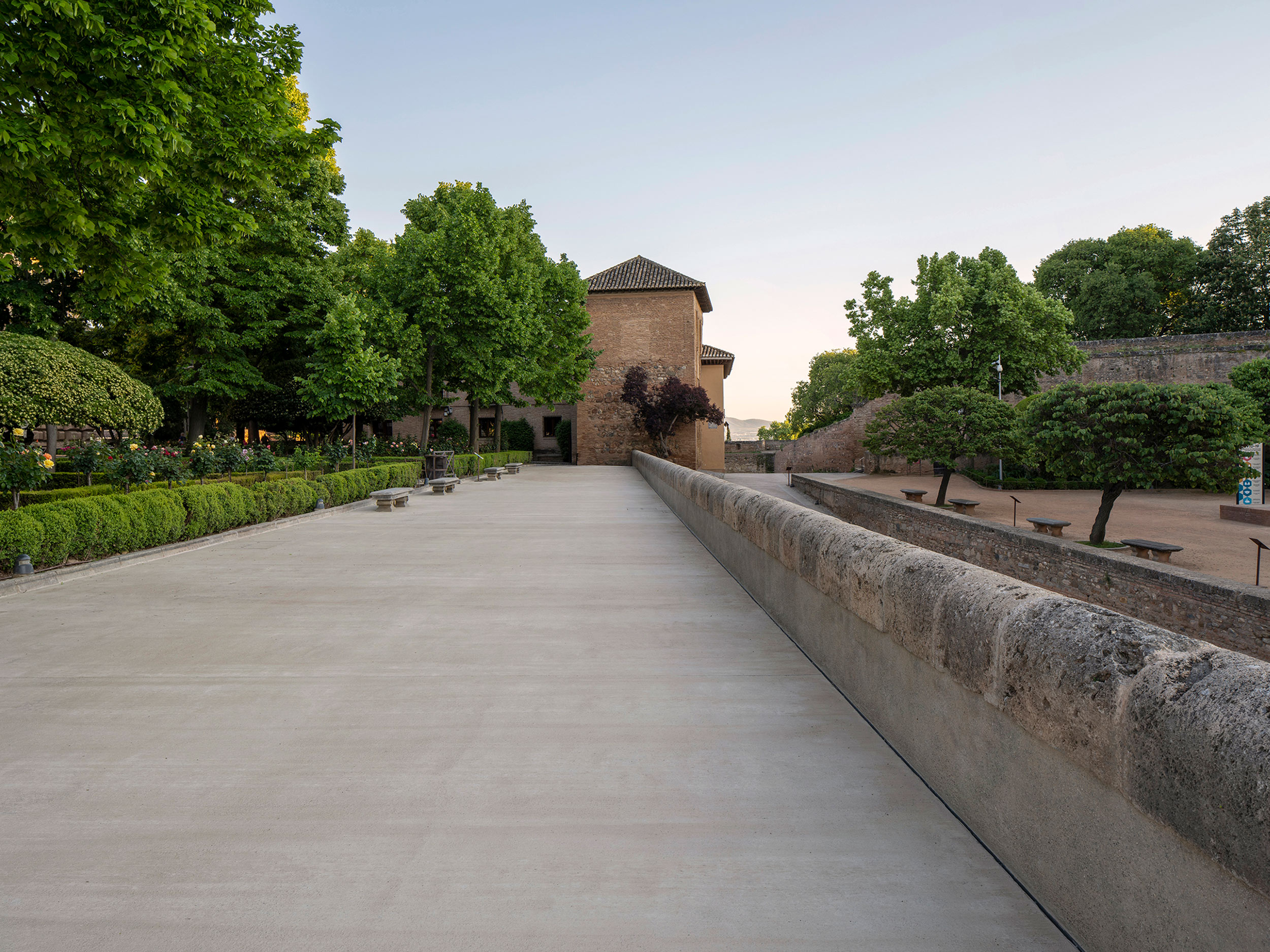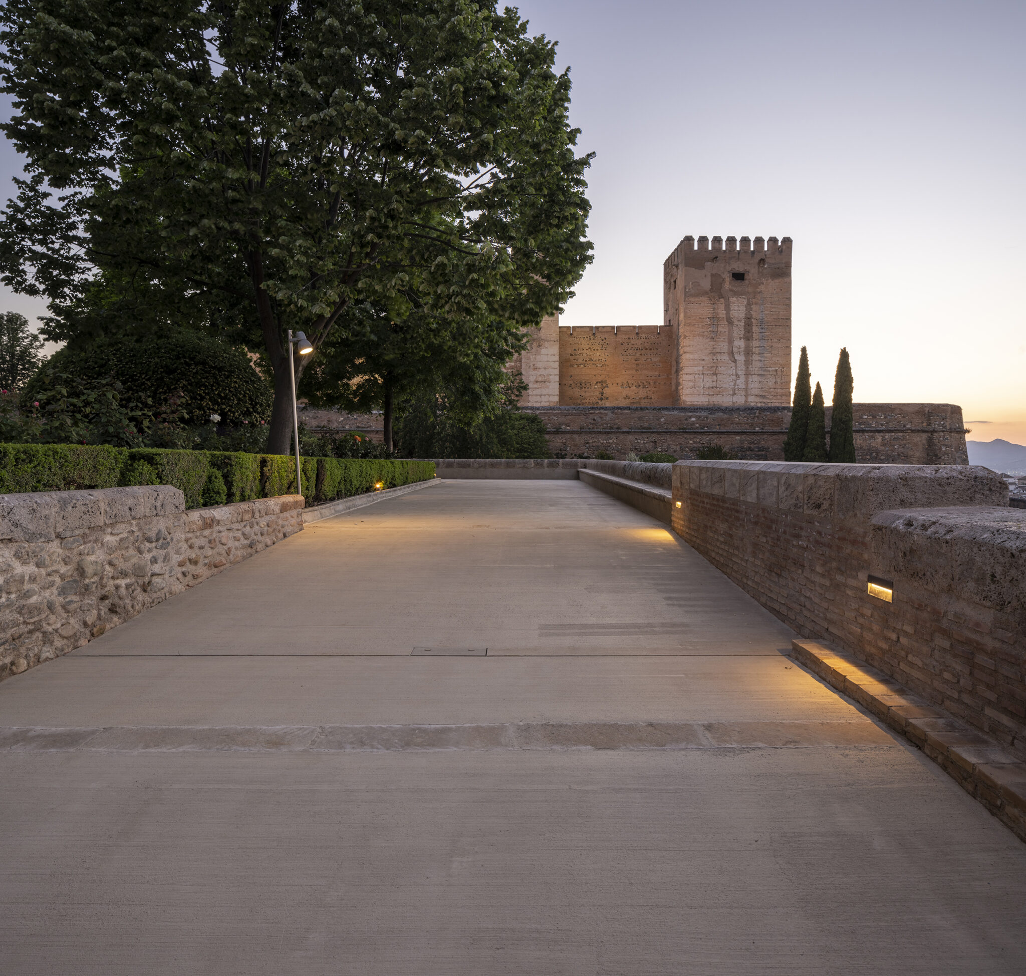 Projeto de pavimentação com betão pigmentado nas áreas exteriores da Alhambra.
